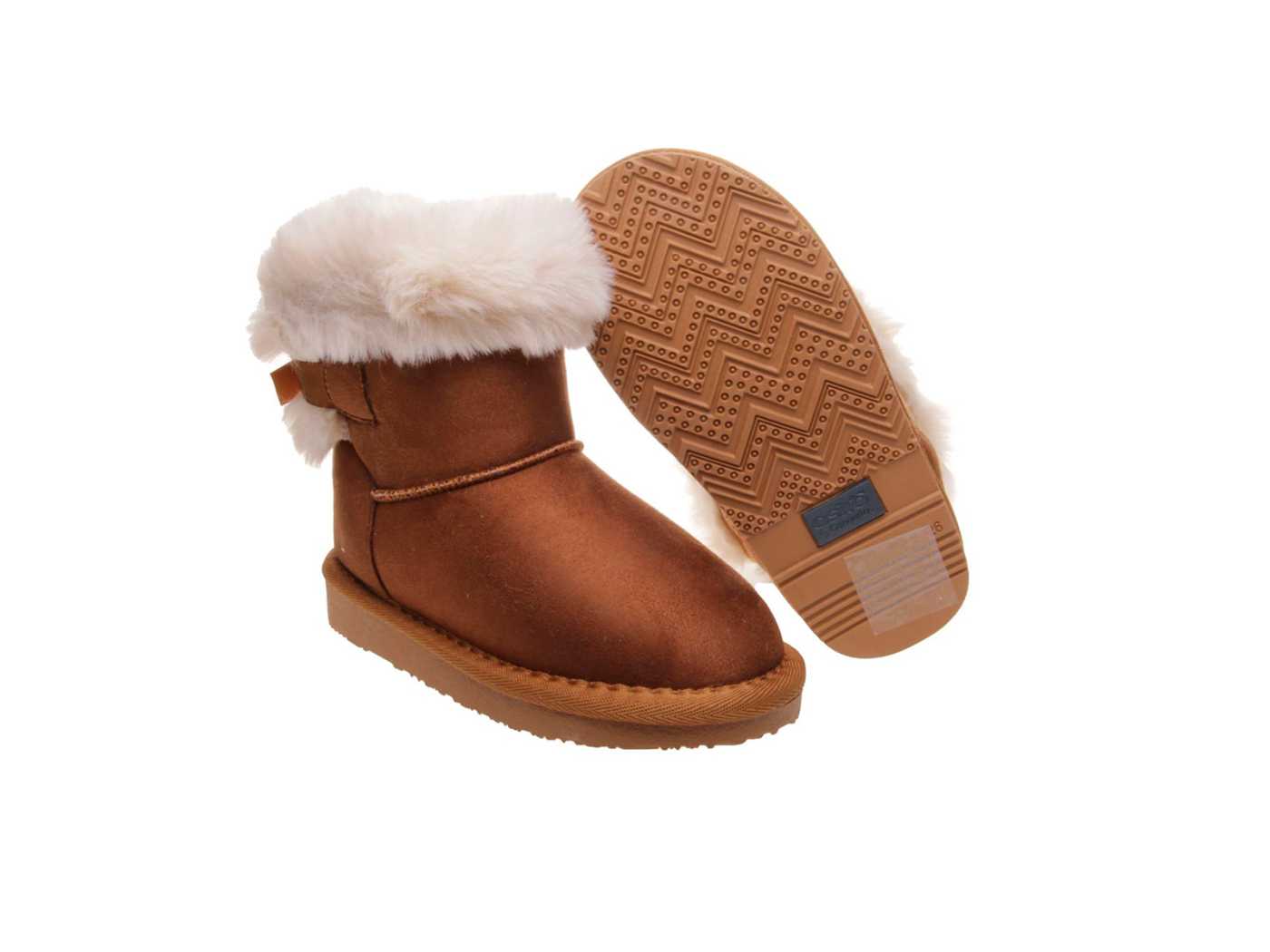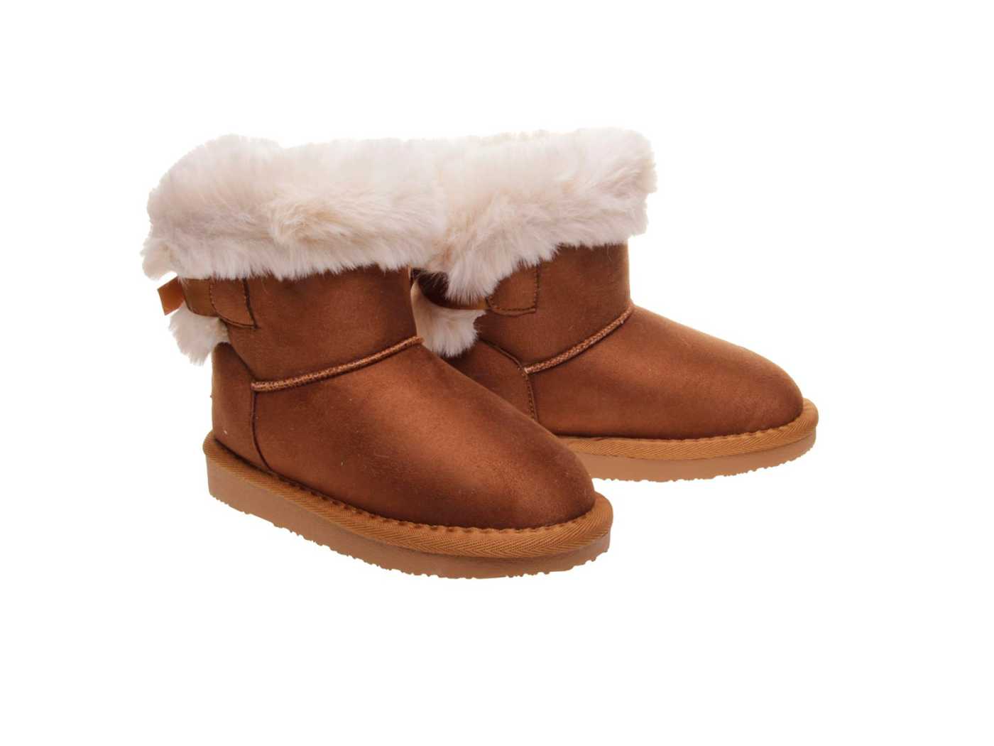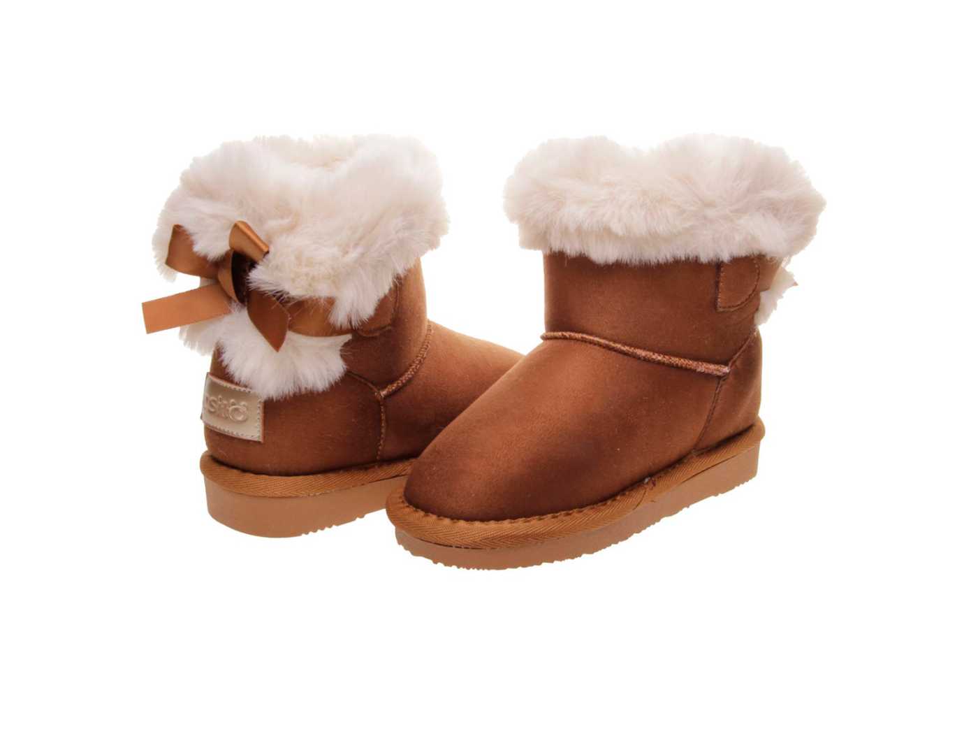 Botas para niña con: • Color beige • Cierre metido • Adorno lazo de raso • Pelo sintético • Estilo casual • Suela de goma antideslizante