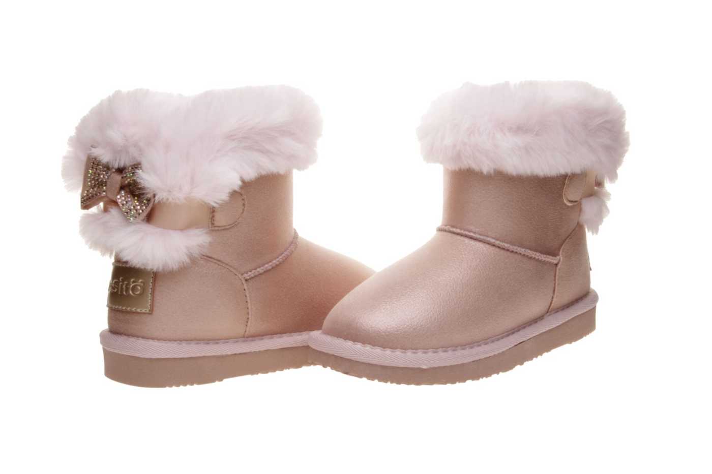 Botas para niña con: • Color rosa • Cierre metido • Adorno lazo de raso • Pelo sintético • Estilo casual • Suela de goma antideslizante
