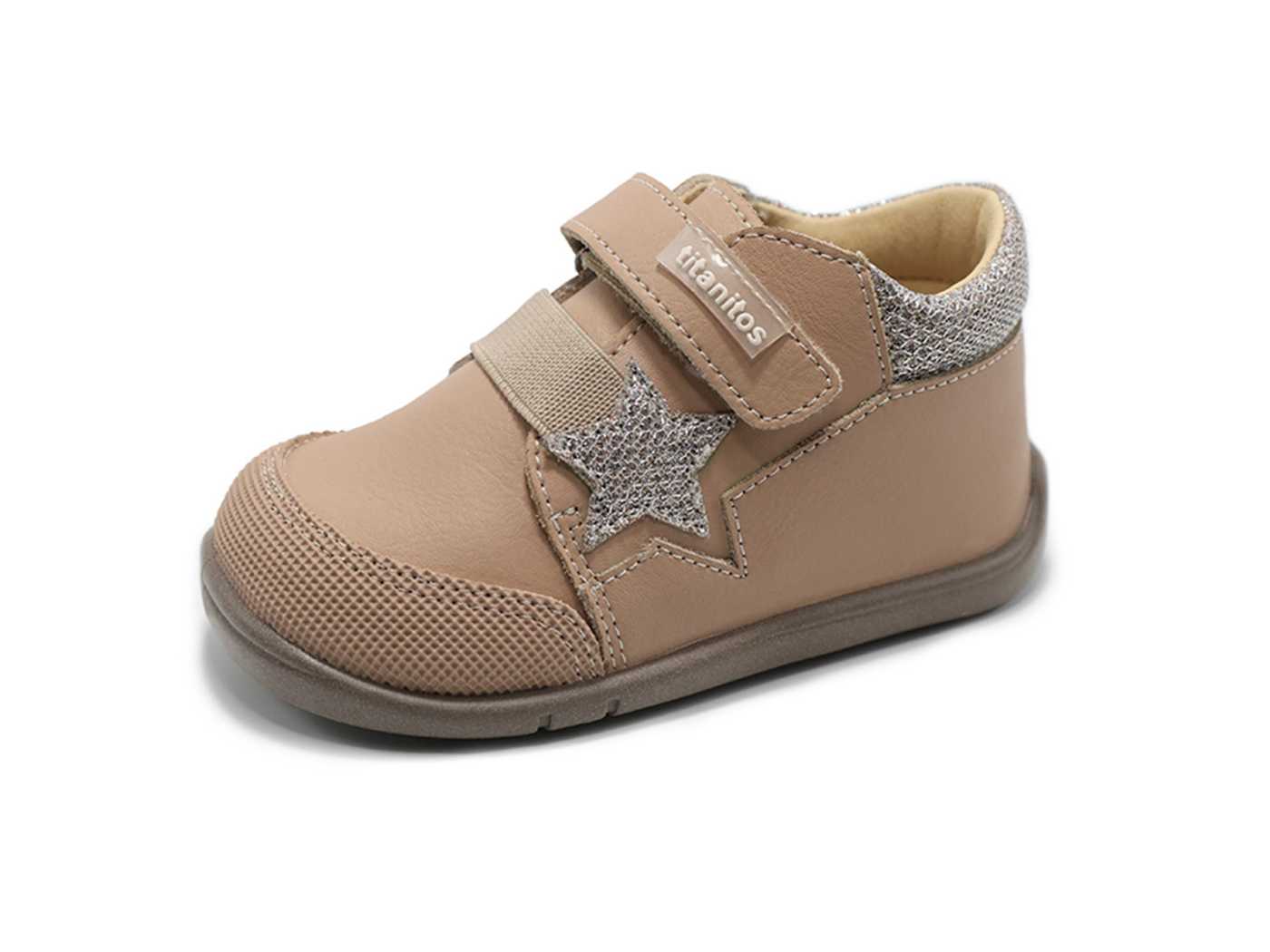 Bota respetuosa Titanitos en color camel clásico, con doble cierre de velcro, puntera reforzada y suela flexible. Diseñada para acompañar el ritmo de tu peque con seguridad y comodidad. Pues mira, estas botitas camel son de esas que en cuanto las pruebas ya no quieres otras. Primero, porque el color combina con absolutamente todo: con un vestido en días especiales, con leggins para salir a jugar, o con los vaqueros del cole. Y segundo, porque son muy fáciles de poner. El doble velcro es una maravilla: se ajusta en un segundo y además da firmeza al pie. Y claro, cuando tu hija empieza con el típico “yo sola”, es un gustazo verla hacerlo sin ayuda. La puntera reforzada es otro detalle que se nota un montón. Ya sabes que los peques arrastran los pies, tropiezan o se paran de golpe contra cualquier cosa. Con estas botas, los deditos están bien protegidos y el zapato aguanta el trote sin desgastarse rápido. Y la suela, de goma flexible y antideslizante, acompaña cada movimiento y da seguridad tanto en el parque como dentro de casa. Por dentro son suaves y cómodas, así que aunque las lleven todo el día, los pies siguen calentitos y sin rozaduras. Y eso, después de horas de juegos, saltos y carreras, vale oro. En resumen: unas Titanitos hechas para el día a día, que protegen, dan libertad de movimiento y además tienen ese detalle de la estrellita en el lateral que las hace aún más especiales. Como un abrazo firme y suave a la vez, que acompaña cada paso de tu hija. Porque sí, cada paso cuenta. Y con estas botas camel, los vive cómoda, segura y feliz. Preguntas frecuentes que solemos hacernos ¿El doble velcro ajusta bien el pie? Sí, se adapta fácilmente y da una sujeción firme. ¿La puntera reforzada protege de golpes? Sí, evita rozaduras y cuida los deditos en cada paso. ¿La suela es flexible de verdad? Sí, se dobla con el pie y no limita el movimiento natural. ¿Resbalan en suelos lisos? No, la goma antideslizante mantiene la seguridad. ¿Pesan demasiado? No, son muy ligeras y no cansan aunque se usen todo el día. ¿Sirven para el cole y el parque? Sí, están hechas para resistir el trote diario. ¿Se limpian fácilmente? Sí, con un paño húmedo quedan listas otra vez. ¿Van bien para pies anchos? Sí, el doble velcro ayuda a que se adapten sin apretar. ¿Son adecuadas para invierno? Sí, mantienen los pies calentitos y cómodos. ¿El color camel combina bien? Sí, es un tono neutro que va con cualquier prenda.