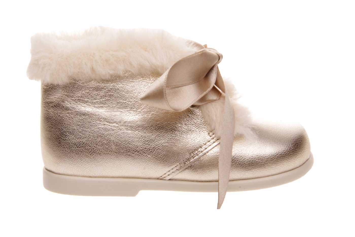 un material “must” de esta temporada. Sobre todo, el metalizado dorado y plateado. Presentes en diversidad de modelos de niña: deportivos, manoletinas, bluchers. El metalizado llegó pisando fuerte, muy de tendencia.